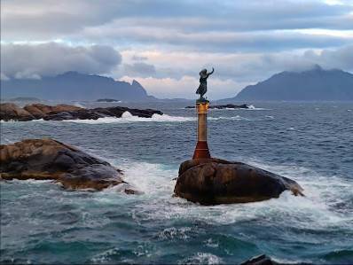 Flott statue av fiskerkona, fin promenade molo med utsikt til sjøen og svolvær. Tilkomsten med bil var uoversiktlig, ikke lett å finne. Måtte kjøre gjennom industriområde med dårlig veg. Fiskerkona fortjener bedre adkomst muligheter enn dette.
